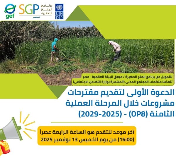 First Call for Project Proposals under Operational Phase 8 ❗❗💵 Funding by the Small Grants Programme (GEF/SGP) – Egypt 💵⚠️ Deadline for submission of proposals: